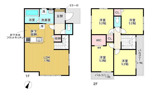 システムキッチン・洗髪洗面化粧台・洗浄便座・トイレ2カ所・追焚き給湯・モニター付インターホン・床下収納