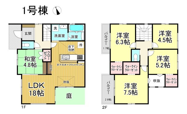 システムキッチン・洗髪洗面化粧台・洗浄便座・トイレ2カ所・追焚き給湯・モニター付インターホン・床下収納・宅配ボックス