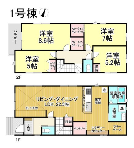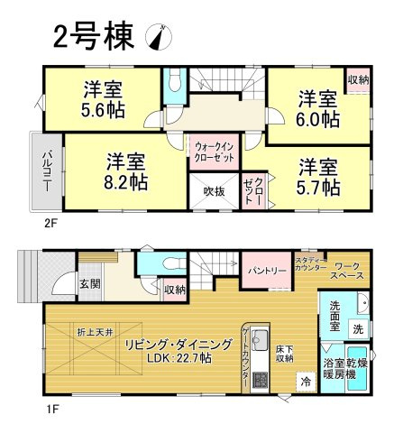 システムキッチン・洗髪洗面化粧台・洗浄便座・トイレ2カ所・追焚き給湯・モニター付インターホン・床下収納