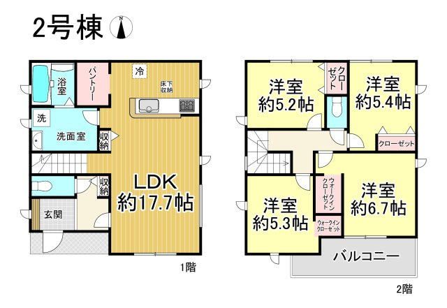 システムキッチン・洗髪洗面化粧台・洗浄便座・トイレ2カ所・追焚き給湯・モニター付インターホン・床下収納