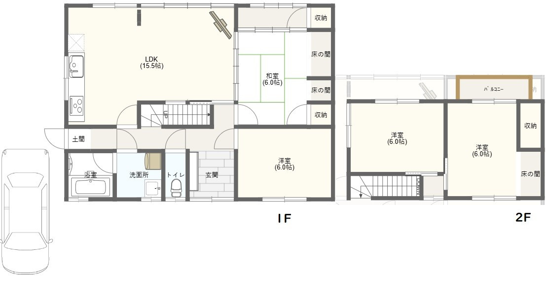システムキッチン・洗髪洗面化粧台・洗浄便座・トイレ2カ所・追焚き給湯・モニター付インターホン・床下収納